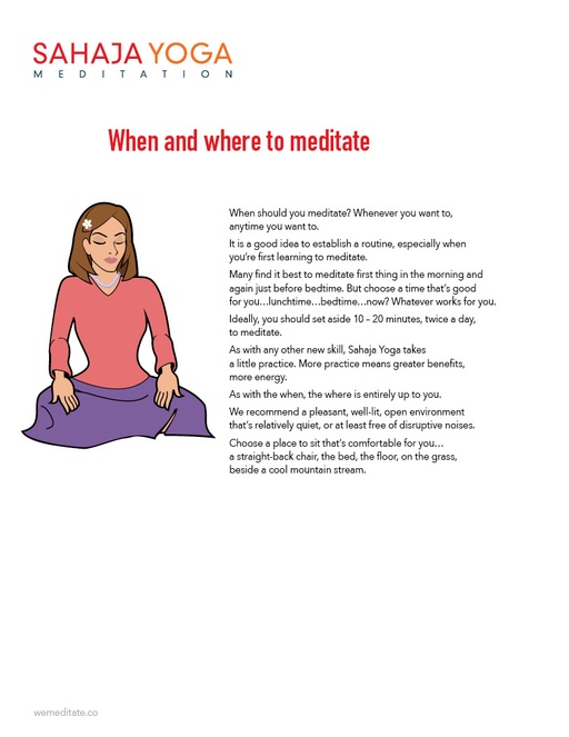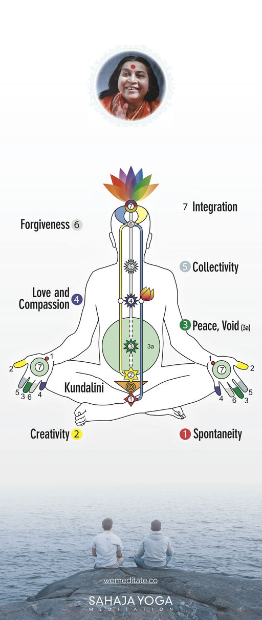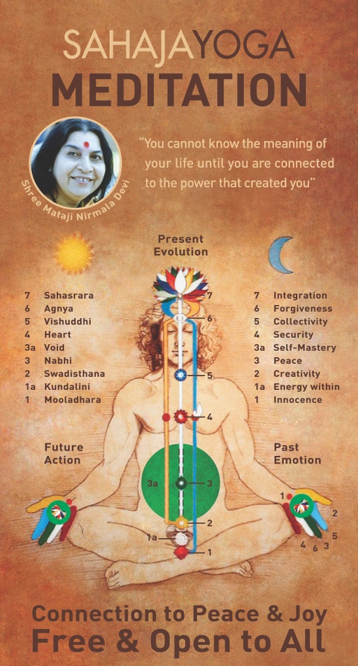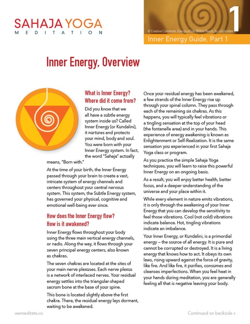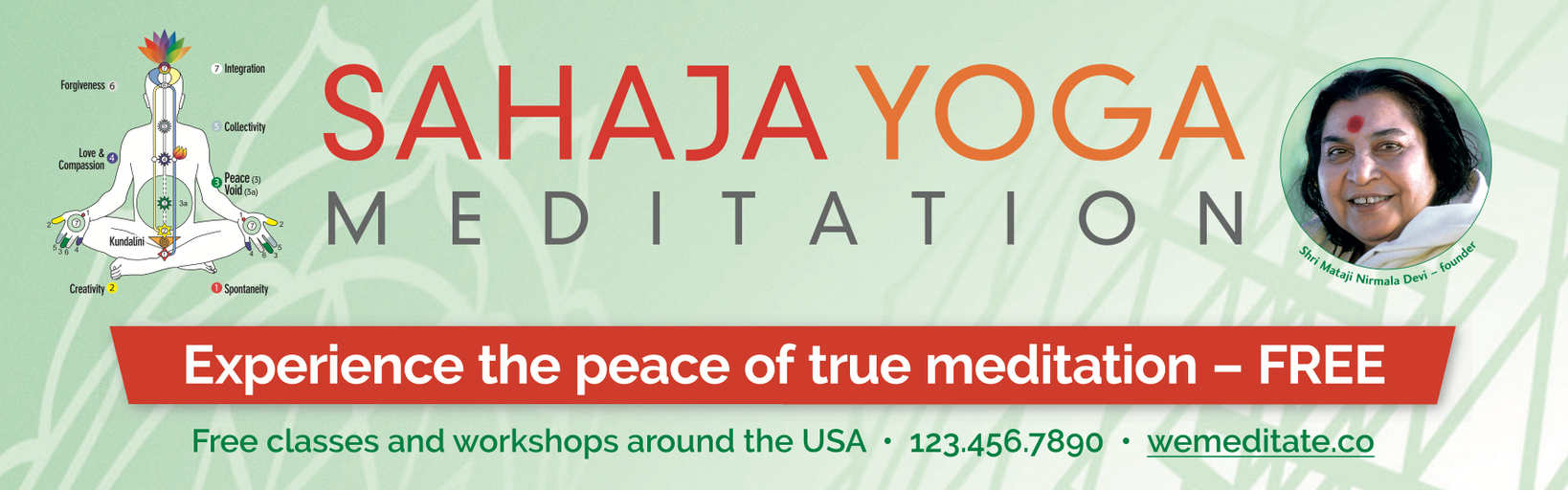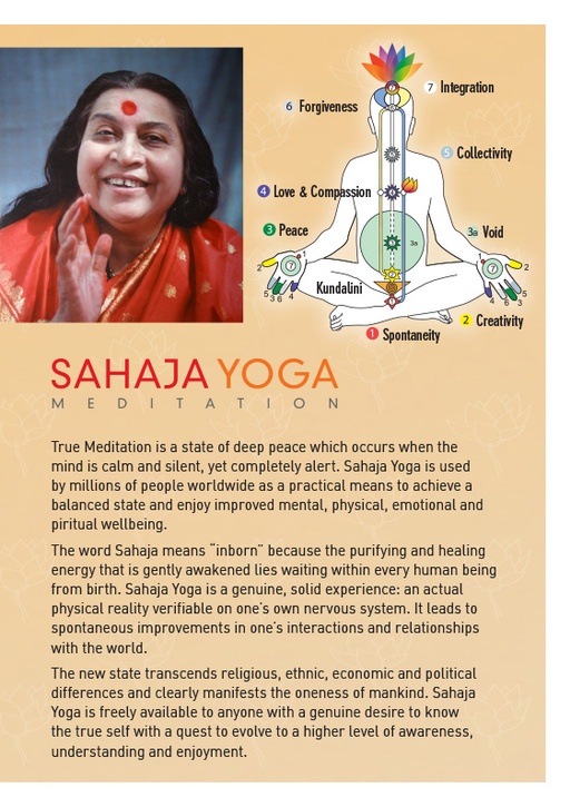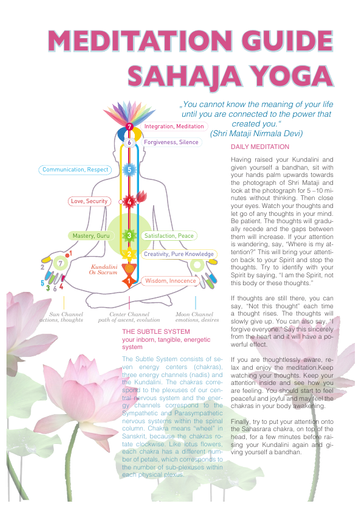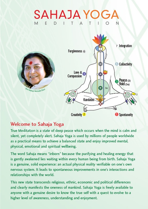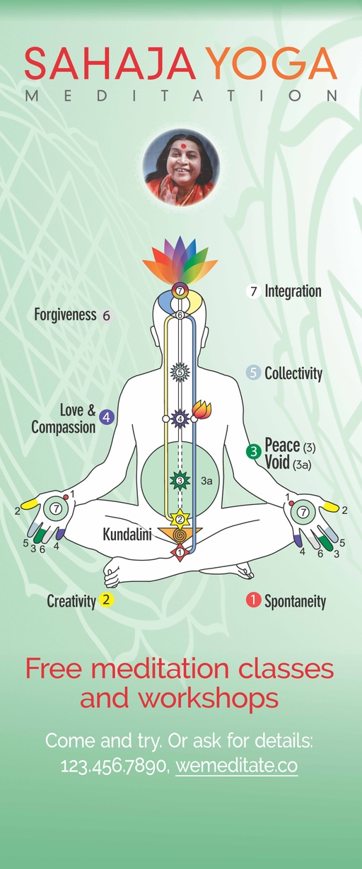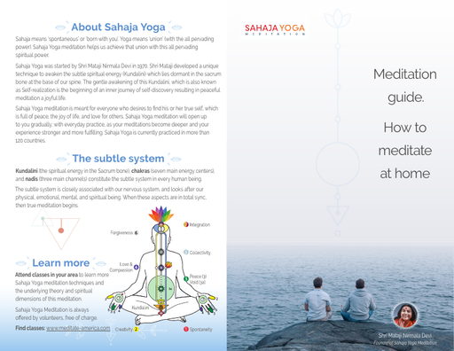 Double sided, US-letter sized. Sahaja Yoga Meditation logo, URL: we meditate.co